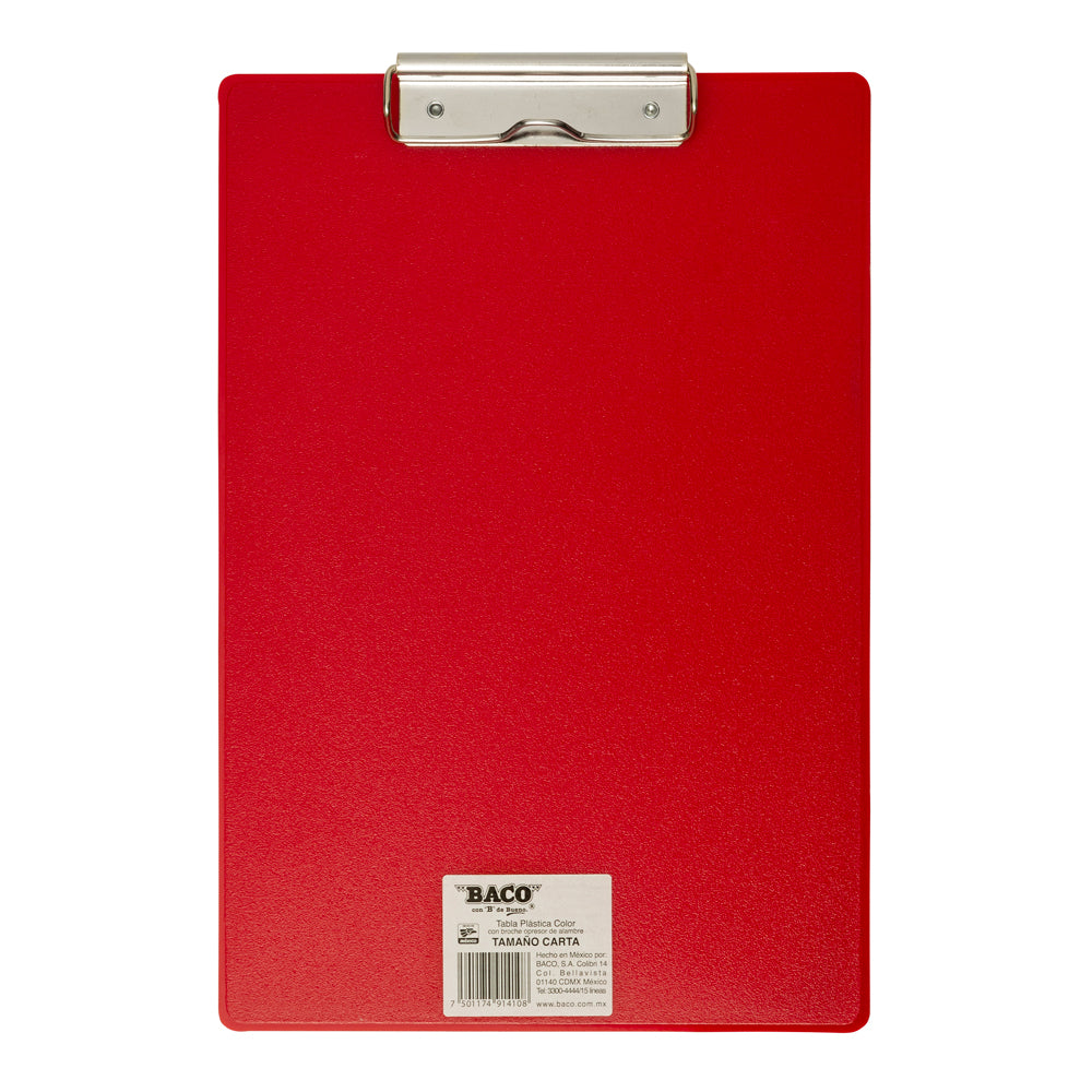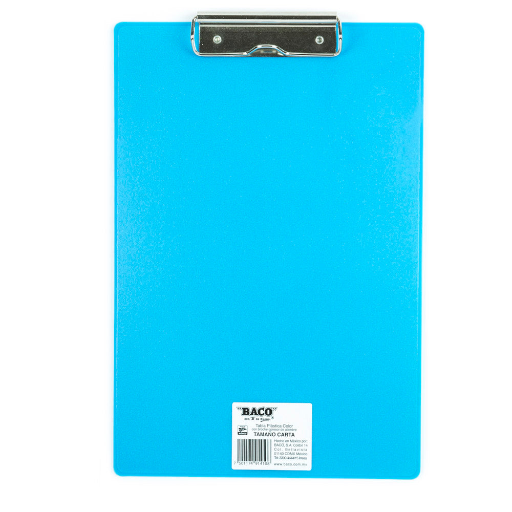 Tabla de Plástico con Broche de Alambre | Tamaño Carta | BACO | 40 piezas